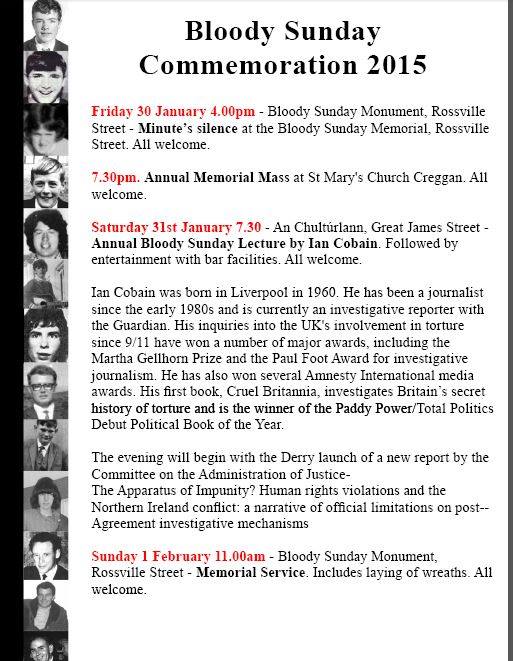 - The full programme of events for the 1999 Bloody Sunday weekend from January 29-January 31